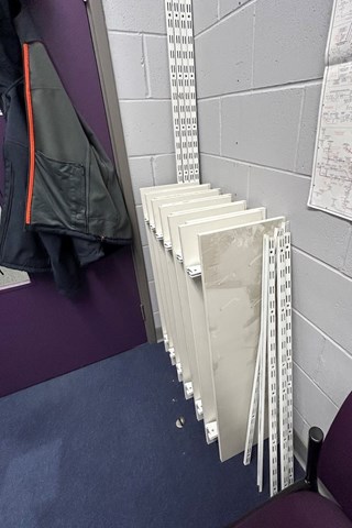 Twelve white shelves with metal frame 33