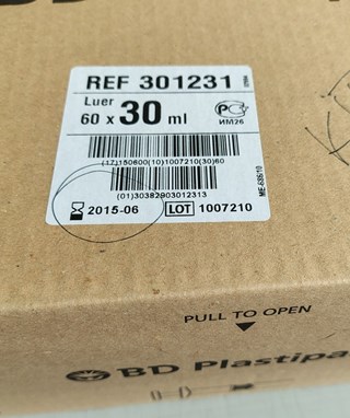 Plastic syringe (expired) luer fitting 126